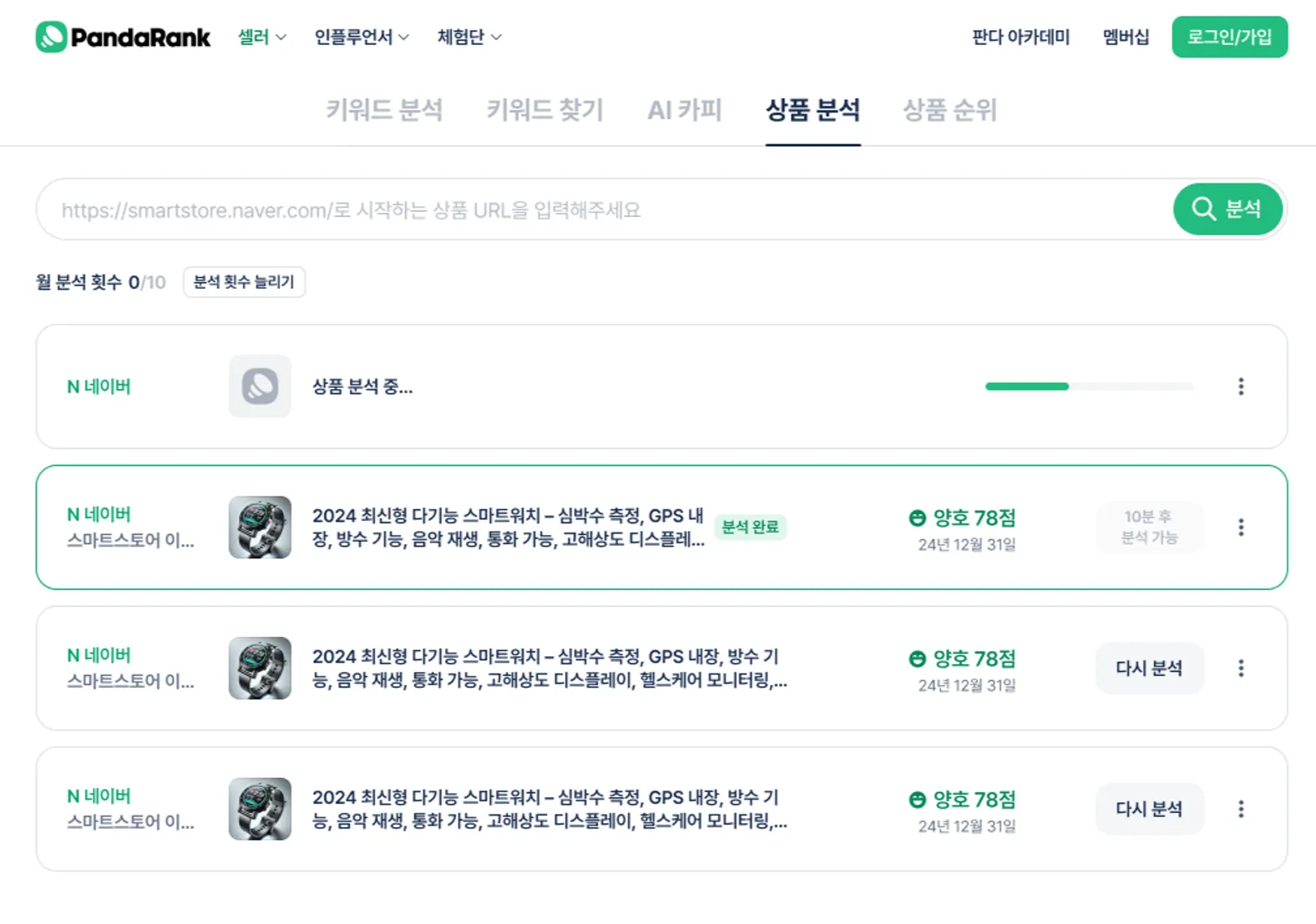 셀러 > 상품 분석