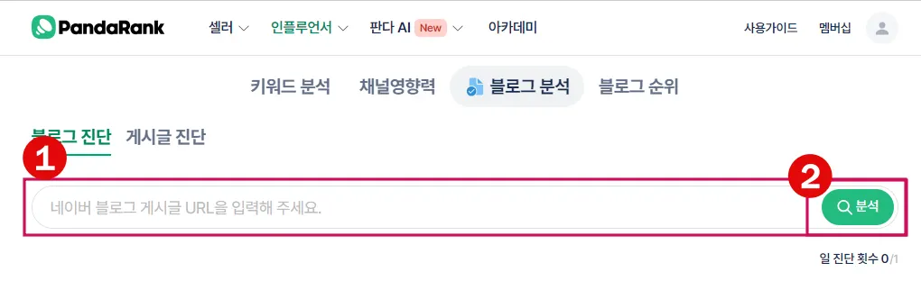 진단이 필요한 블로그의 URL을 복사한 후 위 이미지의