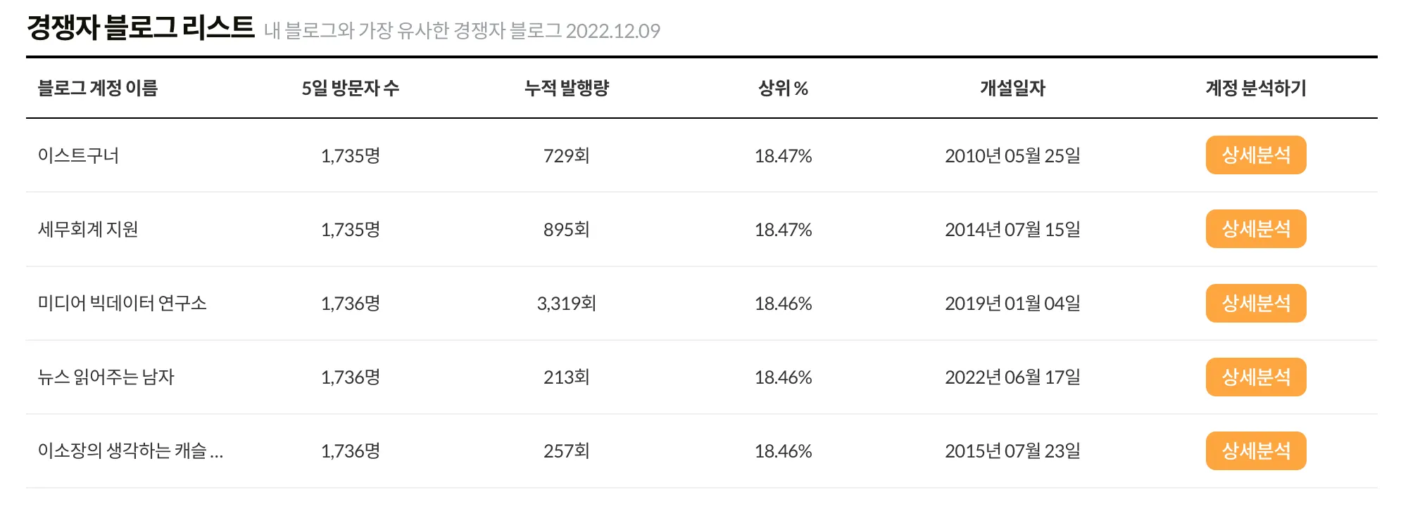 내가 운영하는 블로그부터 경쟁자의 블로그까지.