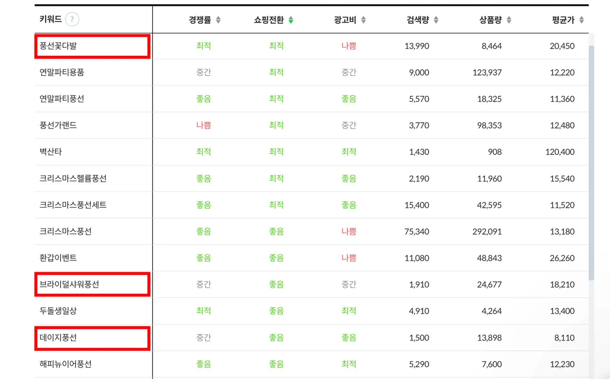 풍선을 팔고싶다면, 아래처럼 키워드를 조합해 볼 수 있겠네요.