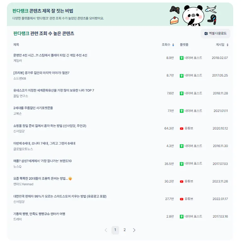 ‘판다랭크’ 키워드로 블로그 글을 쓴다면 어떨까요?