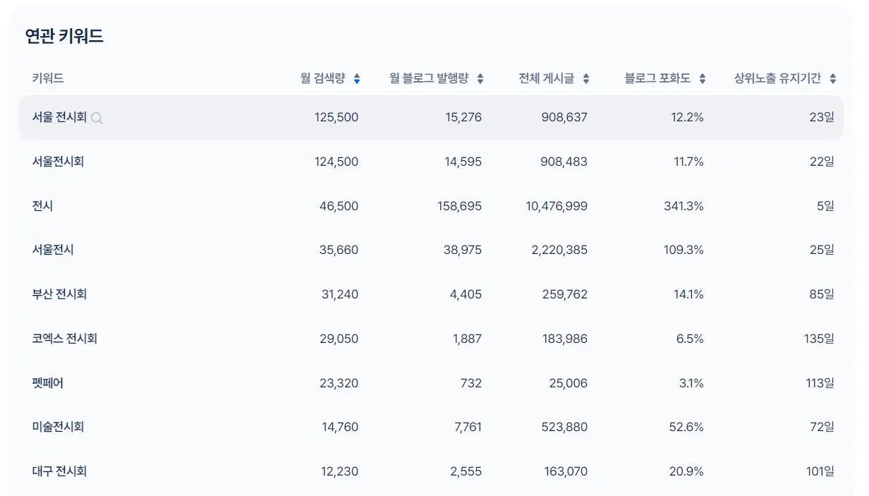 이런 식으로 여러 데이터를 참고해 감으로 키워드를 정하고 글을 쓰는 것이 아닌 데이터에 근거하여 키워드를 잡고 글을 쓸 수 있어요.