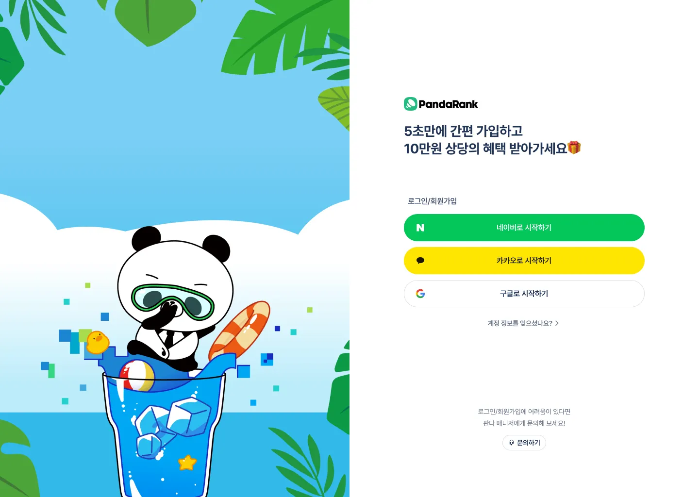 판다랭크는 간편한 소셜 로그인을 활용하여 회원가입과 로그인을 지원하였는데요,