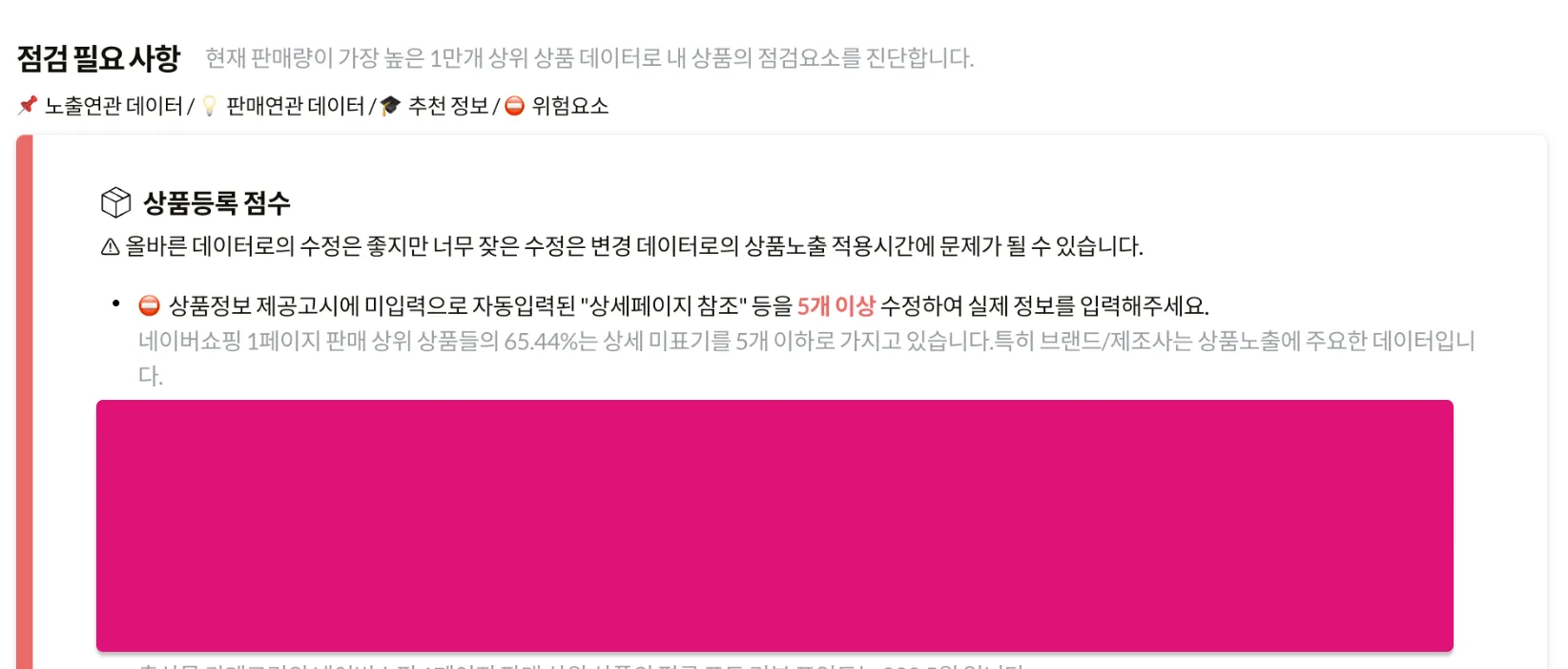 상품 분석에서는 사장님들이 상품을 등록하거나 관리할 때 부족한 부분은 없는지 확인해주는 서비스에요.