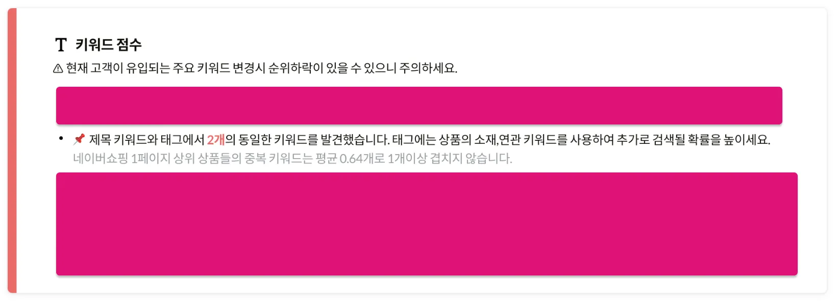 키워드 점수란, 상품명이나 태그 등에 사용한 키워드가 적절히 사용되었는지를 진단한 점수에요.